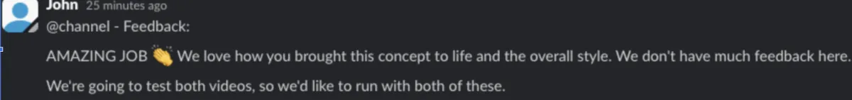 "I'm beyond impressed with the production quality and the creative ideas your team brings to the table. You've taken our videos to the next level, and I couldn't be happier with the results"