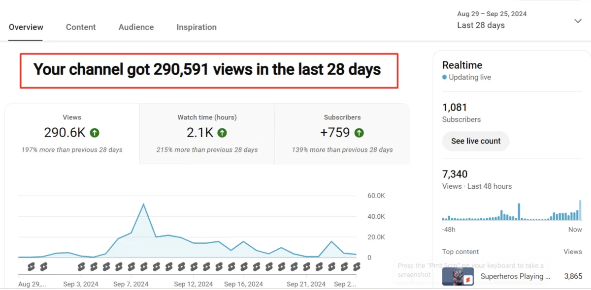 We provide regular reports with detailed analytics, including watch time, engagement rates, click-through rates, and subscriber growth. This data helps us continuously refine your strategy to maximize results.